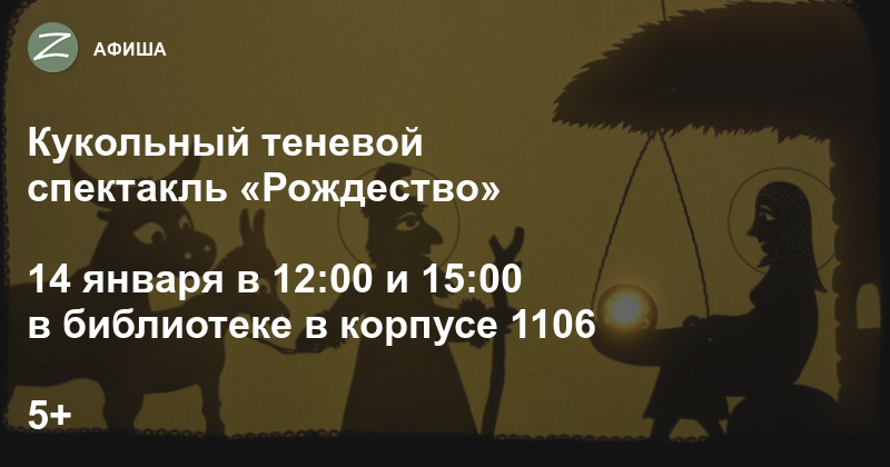 Фольклорный театр «Ученый медведь» привозит в Зеленоград теневой спектакль по мотивам традиционного вертепа — «Рождество», в котором звучат народные песни, колядки, загадки, а также живая музыка.