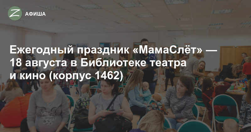 18 августа библиотеки Зеленограда и городское сообщество активных мам «Чудо мама клуб» приглашают на ежегодный праздник «МамаСлёт» с 15:00 до 19:00 в Библиотеку театра и кино (корпус 1462), а если будет хорошая погода, то и на зеленой зоне перед библиотекой.