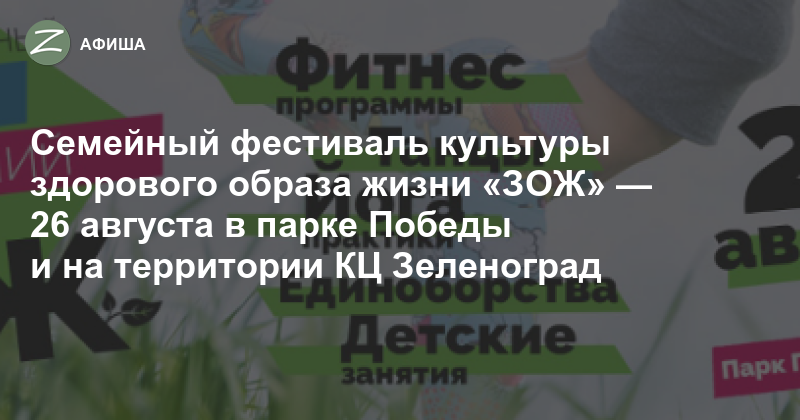 26 августа в течение восьми часов на территории КЦ «Зеленоград» и Парка Победы будут проходить мастер-классы по разнообразным фитнес-программам, танцам, единоборствам, марафон по различным направлениям йоги и развивающим практикам, лекции, соревнования, детские занятия.