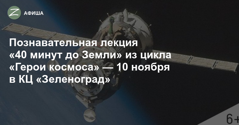 10 ноября в 17:00 в КЦ «Зеленоград» (фойе 2 этажа) состоится вторая познавательная лекция «40 минут до Земли» из цикла «Герои космоса». На лекции ребята узнают интересные факты о первой в мире стыковке двух космических кораблей и о беспримерном проявлении мужества советского космонавта при возникновении внештатной ситуации. Лектор — Сергей Косицын, руководитель Московской городской творческой студии технического творчества «Конструктив», главный судья зеленоградских соревнований по робототехнике. «Герои космоса» — проект КЦ «Зеленоград», призванный в интересной и доступной форме рассказать детям о космонавтике. Вход свободный