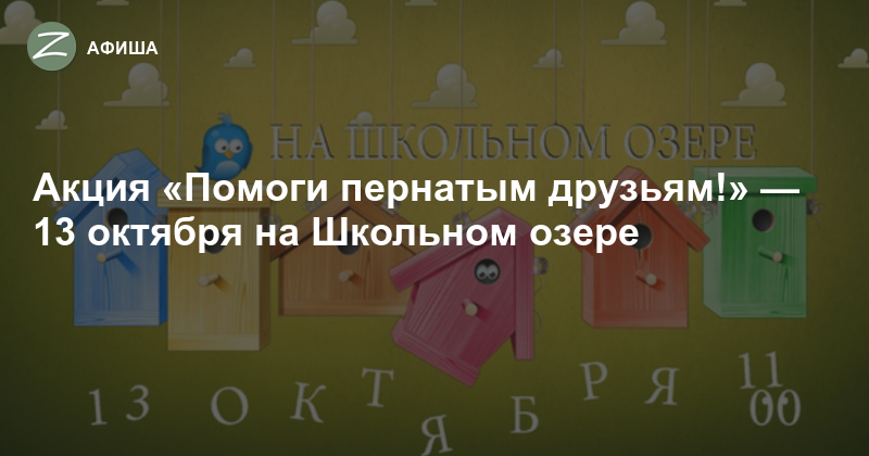 ГБУ «Энергия» и ГПБУ «Мосприрода» приглашают всех неравнодушных детей и взрослых 13 октября в 11:00 на Западную часть Школьного озера принять участие в акции «Помоги пернатым друзьям!». Приходите сами, приводите друзей, не забудьте захватить свою кормушку для птиц!