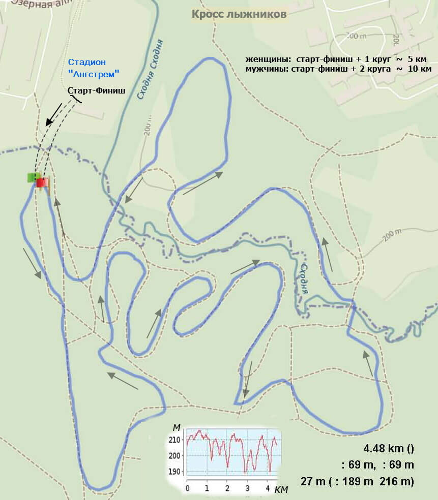 11.00 любители бега все вместе стартуют на стадионе «Ангстрем» и совершают пятикилометровый круг в лесопарке по лыжероллерной трассе. Женщинам необходимо будет преодолеть один такой круг, мужчинам — два круга (10 км).
