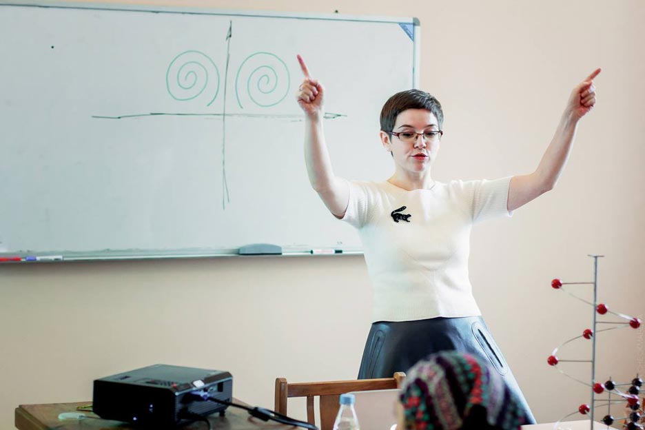 Ксения Козловская — кандидат физико-математических наук, научный сотрудник Московского государственного университета и доцент Московского физико-технического института, читает курс физики конденсированного состояния.