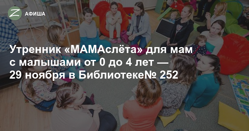 Библиотека театра и кино №252 (корпус 1462) приглашает на «Утренник» проекта детско-родительского форума «Мамаслёт», который состоится 29 ноября с 10:00 до 13:00. В программе: живая музыка, выставка книг, игротека, рукодельные мастерские и лекции для родителей. Количество мест ограничено. Вход бесплатный, но необходима регистрация.