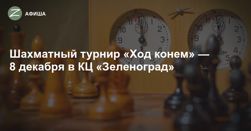 8 декабря в КЦ «Зеленоград» состоится Шахматный турнир «Ход конем». Организаторами турнира выступают КЦ и Спортивно-досуговый центр «Талисман». В состязаниях смогут принять участие все желающие, невзирая на пол и возраст: дети и взрослые, профессионалы и любители. Победителей ждут кубки и призы. Вход свободный. Начало в 15:00.