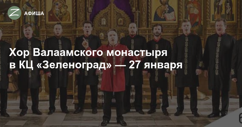Концерт уникального хора Валаамского монастыря состоится 27 января в театральном зале культурного центра «Зеленоград» (Центральная площадь, дом 1). Коллектив выступит с рождественской программой «Свет Христов просвещает всех». Начало в 18:00.