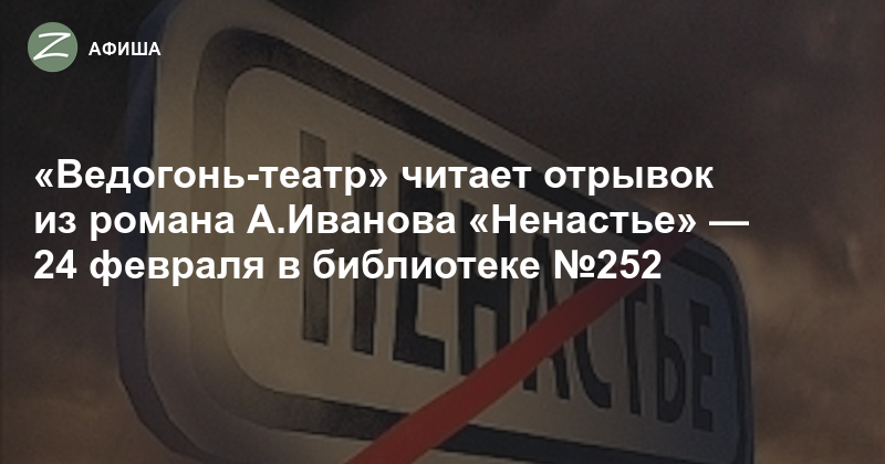 24 февраля «Ведогонь-театр» начинает читать современную прозу. Первое чтение пройдет в Библиотеке театра и кино (корпус 1462). Роман А. Иванова «Ненастье» был признан «Книгой года» в 2016 году, а в ноябре 2018 вышел телесериал, снятый по мотивам книги. И «Ведогонь-театр» приглашает не только погрузиться в художественный мир современной прозы, но и присоединиться к обсуждению, которое состоится сразу после прочтения отрывка из романа. Начало в 19:00. Стоимость билета 500 руб.