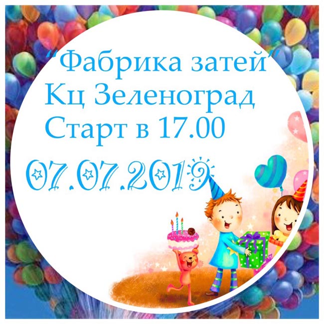 Культурный центр «Зеленоград» и проект «Зеленоградские мамочки» 7 июля приглашают мам и малышей на на увлекательное и интересное мероприятие «Фабрика затей». На протяжении праздника будут проходить увлекательные мастер-классы для детишек, аквагрим, шоу мыльных пузырей, предусмотрен сладкий стол для сладкоежек, а для будущих мамочек пройдёт интересная лекция от Доулы на тему предстоящих родов. Вход свободный. Начало в 17:00.