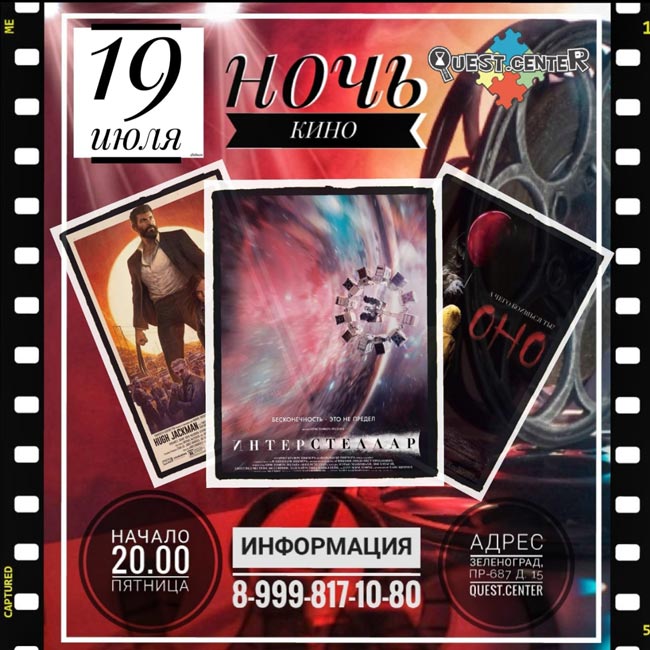 - В этот день, скидки на квесты для посетителей КИНОНОЧИ ДО 40%. Регистрация.