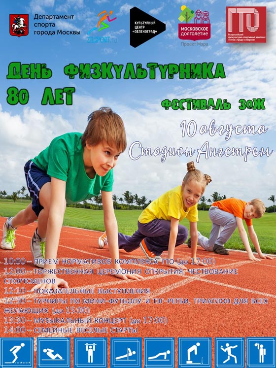 В субботу, 10 августа, на стадионе «Ангстрем» (Озерная аллея, 3) пройдет окружной физкультурно-спортивный праздник, приуроченный к празднованию 80-летия Всероссийского дня физкультурника.