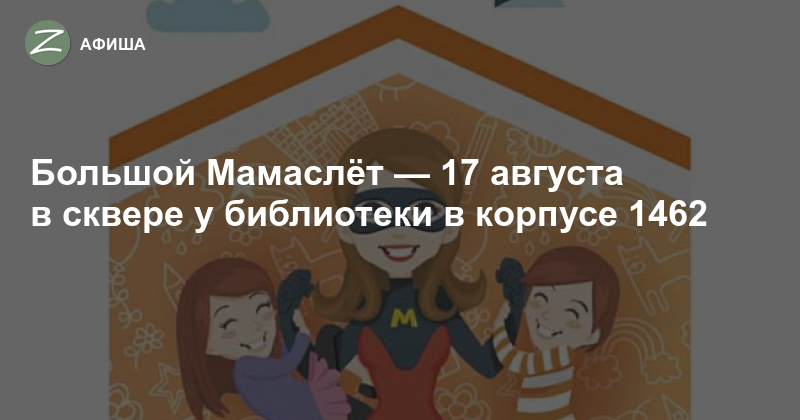 Большой Мамаслёт пройдет 17 августа с 15 до 19 часов в сквере около библиотеки, расположенной в корпусе 1462. Мероприятие организуют команда Централизованной библиотечной системы Зеленограда и главный партнер проекта — городское сообщество активных мам клуба «ЧудоМама». Они подготовили обширную развлекательно-познавательную программу. Участие в слёте примет также зеленоградский перинатальный центр с тремя семейными лекциями. Вход свободный, регистрация — по ссылке.