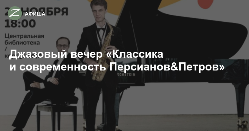Если джаз в Зеленограде, то точно с Юрием Персиановым и Алексеем Петровым! Классическая гостиная, прожектор, как в лучших камерных залах, шикарный «Блютнер» и неподражаемый саксофон, классика и современность в интерпретации двух джазменов по духу и профессиональных музыкантов. В этот вечер есть куда пойти! Центральная библиотека (корпус 607а) приглашает 23 ноября на джазовый концерт. Начало в 18:00. Стоимость билетов 500 руб.