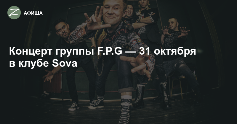 4 декабря группа F.P.G выступит с концертом в честь двадцатилетия альбома «Гонщики. Песни в стиле е***билли» в клубе Sova (Савелкинский проезд, 12). Этих ребят знает каждый уважающий себя панк. Смелые экспериментаторы, отличные музыканты, которые не признают в музыке ограничений и разделений на жанры. Дерзкие тексты, задорные ритмы и заразительно-позитивная энергия F.P.G заставит пуститься в пляс любого. Каждое их выступление — это настоящий праздник. Начало в 19:00. Стоимость билетов 1200 рублей. QR код для входа не требуется.