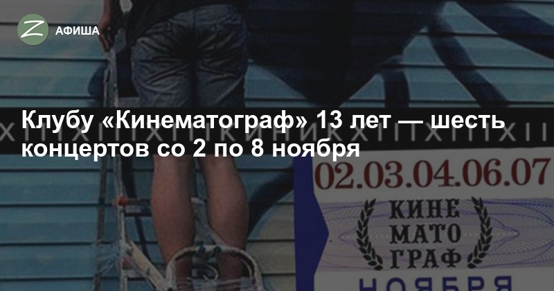 В честь 13-го дня рождения клуб «Кинематограф» в корпусе 159 запускает музыкальный марафон. Первый концерт состоится уже 2 ноября в 20:00. Вход на мероприятия бесплатный (хотя клуб рассчитывает на подарки в виде пожертвований). Страница мероприятия ВКонтакте