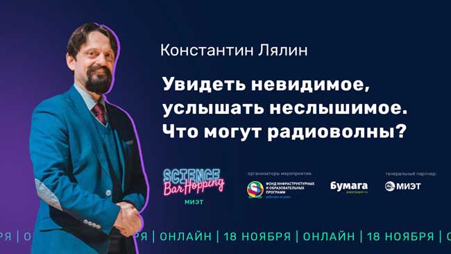 18 ноября пройдет научно-просветительский онлайн-лекторий «Science Bar Hopping: МИЭТ». За один вечер 10 ученых выступят в пяти виртуальных барах, а зрители смогут перемещаться по виртуальной «барной улице», чтобы выбрать для себя самые интересные лекции, пообщаться с единомышленниками и просто хорошо провести время.