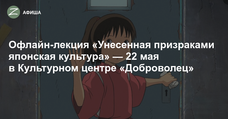 22 мая лектор Trivium Варвара Хлудова расскажет про удивительный мультфильм Хаяо Миядзаки «Унесенные призраками». «Унесенные призраками» — это не просто красивая картинка, но и глубокое отражение японской культуры. Лекция пройдет в культурном центре «Доброволец» в корпусе 514а. Начало в 15:30. Стоимость билета 1000 рублей. При покупке билета на сайте действует скидка 50% по промокоду TRIVIUM.