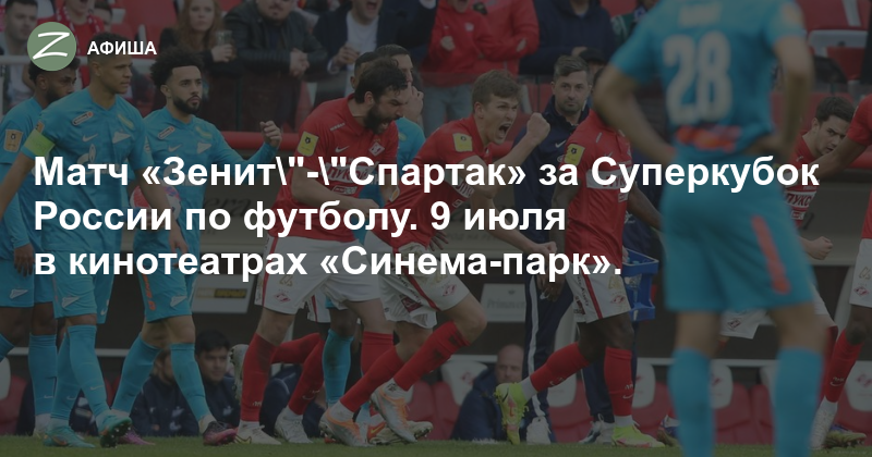 Матч за Олимп-Суперкубок России откроет новый сезон в российском футболе. Смотрите прямую трансляцию в кинотеатрах 9 июля в 19:00 в кинотеатрах «Синема Парк» и «Формула Кино».