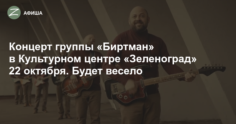 По легенде, ВИА «Биртман» сохраняет и пропагандирует наследие сибирского поэта и музыканта Зиновия Аркадьевича Биртмана. В реальности это заводные песни, полюбившиеся широким массам — их слушают, им подпевают и под них танцуют и мужчины в пиджаках, и молодежь, и девушки всех возрастов. Это смешение жанров, ностальгические нотки 1980-90-х и поп-музыка в хорошем смысле слова, как охарактеризовал её лидер группы Дмитрий Пегов. На концерте в ДК («Культурном центре «Зеленоград») прозвучат лучшие и новые вещи.