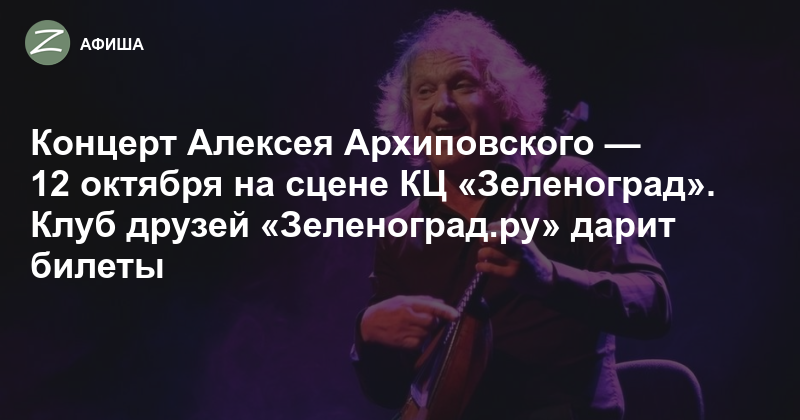 12 октября в 20:00 на сцене Культурного центра «Зеленоград» состоится сольный концерт балалаечника-виртуоза Алексея Архиповского. Продолжительность концерта — 1 час 30 минут. Билеты от 800 рублей можно приобрести на сайте. Доступна оплата Пушкинской картой.