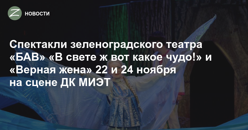 22 и 24 ноября в 19:00 на сцене ДК МИЭТ состоятся показы спектаклей «В свете ж вот какое чудо!» по сказкам Пушкина «Сказка о царе Салтане» и «Сказка о рыбаке и рыбке» и комедии «Верная жена» по пьесе Сомерсета Моэма. Билеты от 500 рублей можно приобрести на сайте.