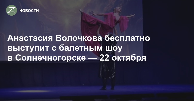 Звезда российского балета и заслуженная артистка Российской Федерации представит свою программу «Сцена моя», в которой, помимо танцев, прозвучат песни и стихи. Вместе с Анастасией на сцене выступят юные артисты из местных коллективов.