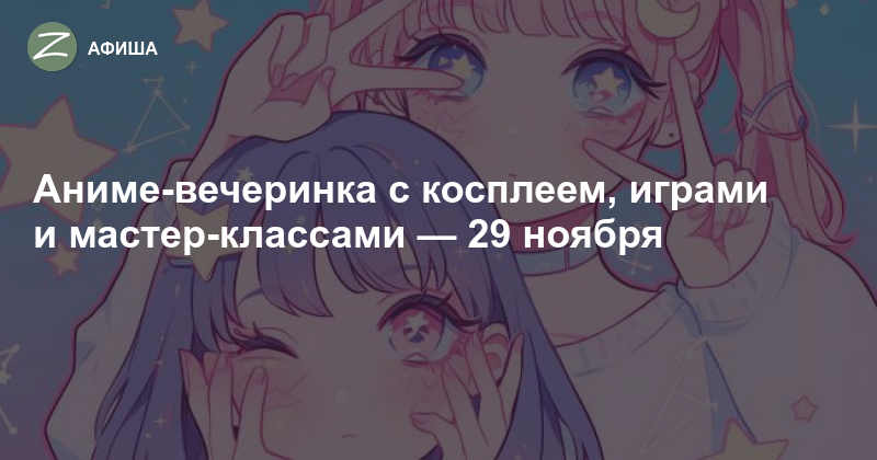 Аниме-вечеринка пройдет в субботу, 29 ноября. Запланировано два мероприятия подряд — с 12:00 до 15:00 и с 16:00 до 19:00. Место проведения — творческое бюро «Зеленая груша» (корпус 606). Билеты — 300 рублей, доступны на сайте ДК Зеленоград.