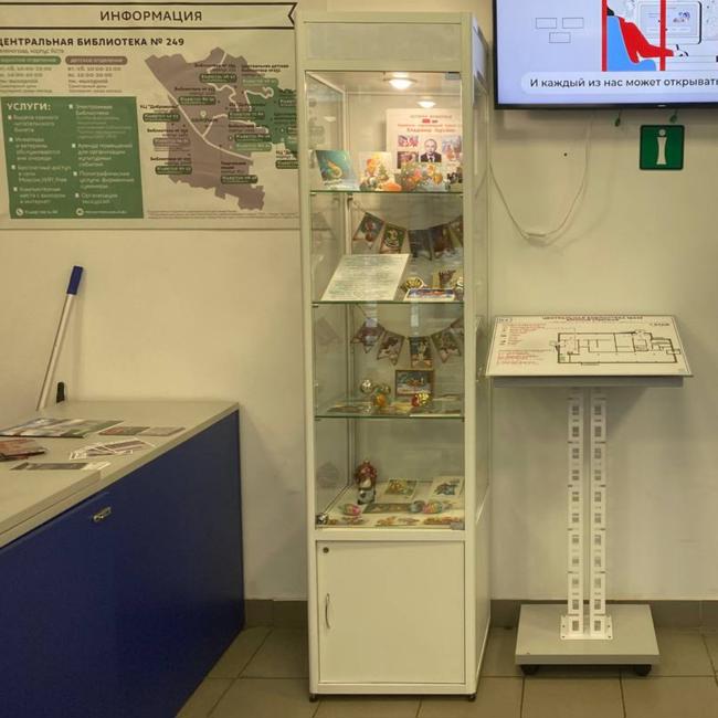 Открытки разместили на первом этаже библиотеки в корпусе 607А, в витрине возле входа.