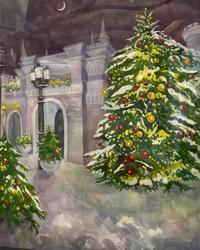В экспозиции — работы с разными мотивами: сцены зимних гуляний и игр, натюрморты с ёлочными игрушками, уютные домашние интерьеры с новогодним светом и другие образы, передающие атмосферу приближающегося праздника.