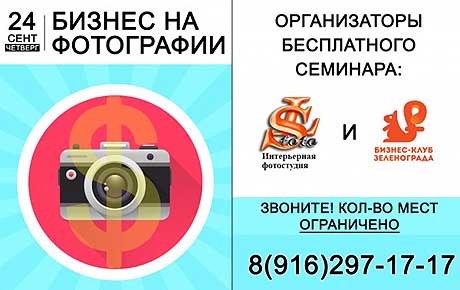 Семинар «Бизнес на фотографии» пройдет 24 сентября в Андреевке