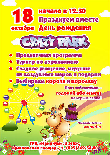«Крейзи парк» устраивает праздник по случаю своего Дня рождения и разыгрывает годовой абонемент 18 октября