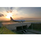 Водители, проезжающие по Шереметьевскому шоссе, могут увидеть необычную картину — прямо над дорогой едут самолеты. Они едут по специальному мосту к новой взлетно-посадочной полосе, которая расположена по другую сторону шоссе от терминалов.