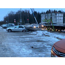 В ночь с пятницы на субботу на повороте с Солнечной аллеи на Центральный проспект, возле Ангстрема, бетонные плиты слетели с грузовика прямо на припаркованную машину. О пострадавших не сообщается.