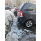Машины перекрыли проход по тротуару, не заезжая на него — длинными багажниками, из-за неправильного проектирования