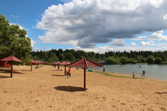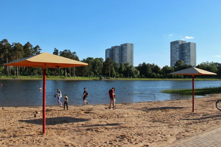 Пляж: это самый маленький пляж в Зеленограде. Купаться здесь можно на небольшом клочке воды, огороженном буйками. На берегу стоят деревянные шезлонги, за ними — четыре раздевалки. В зоне для купания оборудован небольшой лягушатник. Работают спасатели и медпункт. Рядом популярное место для шашлыков, поэтому в выходные загорать, возможно, придётся в запахе шашлыков.