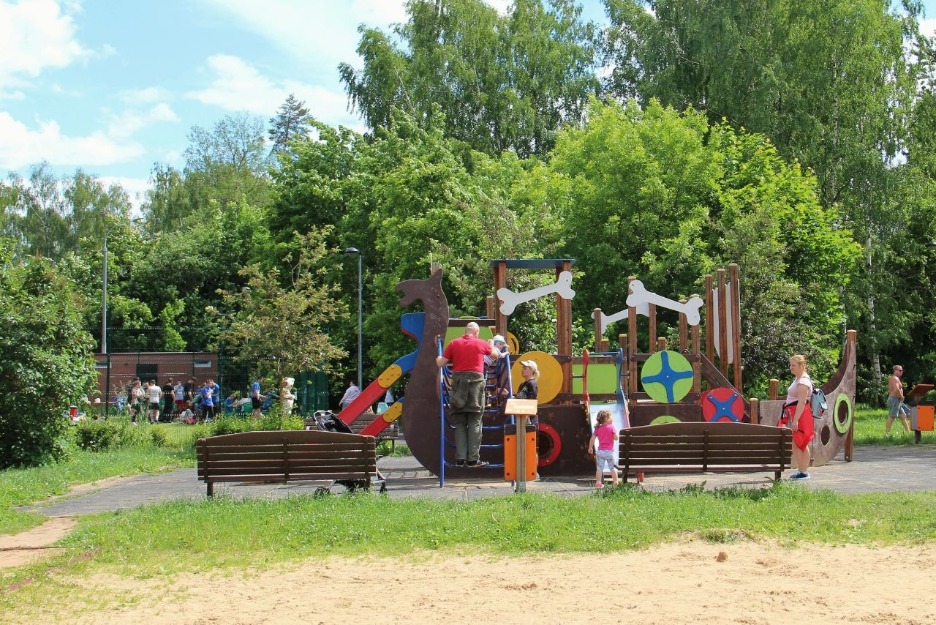 Рядом с озером — рекреационная зона с детской площадкой, спортивными площадками, тренажёрами и скейт-площадкой. Она открыта с 7 до 22.