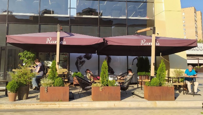 Веранда Ruma’s перед «Электроном» отлично подойдёт для неспешного завтрака или перекуса. Гости могут посидеть на широких металлических креслах с подушками или устойчивых стульях. Тень создают два больших зонта, а украшением служат небольшие деревья и цветы в горшках. Терраса рассчитана на 22 гостей. В Ruma’s вам предложат 11 видов кофе, авторские напитки, круассаны на завтрак, десерты и конфеты ручной работы.