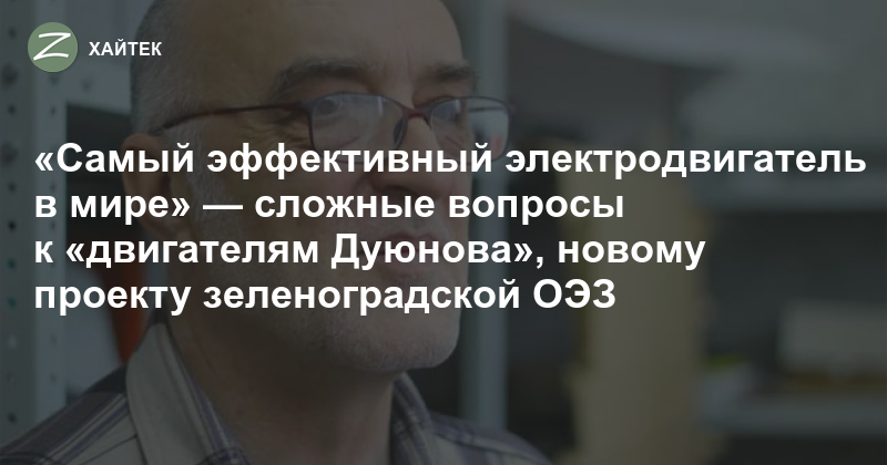 «Самый эффективный электродвигатель в мире» — сложные вопросы к двигателям Дуюнова, новому проекту зеленоградской ОЭЗ 10.07.2019 ZELENOGRAD.RU