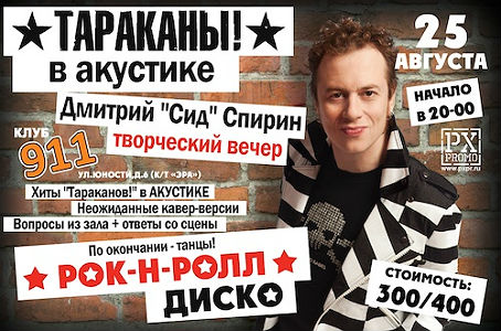 Чтобы получить один из трёх комплектов по два билета на акустический концерт группы "Тараканы!", который состоится в четверг, 25 августа, в клубе "911", оставьте свою заявку. Победитель будет определен в среду, 24 августа, случайным образом из общего числа участников.