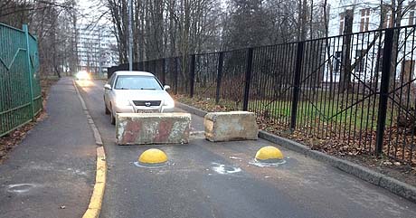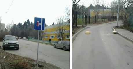 Знаки, запрещающие сквозной проезд, появились в минувшие выходные возле школы №845 и напротив спортивной школы. В проезде положили две бетонные заградительные полусферы, однако практически сразу одну из них кто-то сдвинул в сторону. Сегодня её просто выбросили на тротуар, сообщает корреспондент Zelenograd.ru.