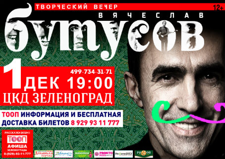13 лет назад Вячеслав Бутусов представил проект «Бибигония», основанный на материале сольного альбома «Овалы». Нынешний концерт станет своеобразным продолжением того концептуального шоу. «Мы не собираемся заманивать обещаниями супер-хитов „Наутилуса“ или „Ю-Питера“ — говорится в анонсе события, — это будет вечер уникальный, искренний, предельно откровенный, местами — беспредельно забавный». Действо станет импровизационным, по настроению: музыкант выходит за рамки формата: «песня-вопрос-ответ-песня».