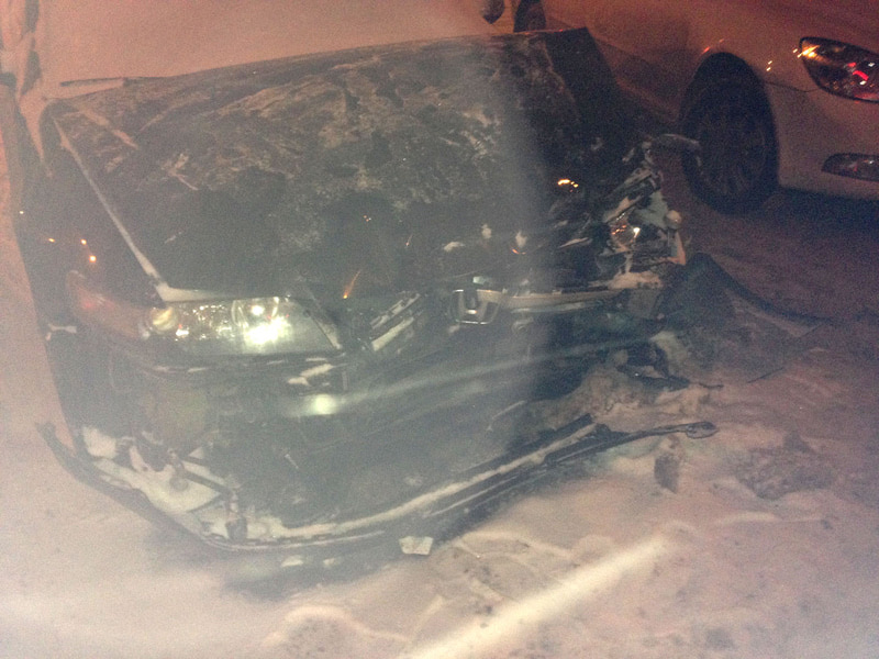 По факту могу уточнить, что мою машину развернуло на 180 градусов авто, чей вес в два раза меньше! Мой аккорд по ПТС весит 1500 кг, а Гольф, если не ошибаюсь, до тонны или даже 800 кг... Причём его машину(гольф) снесло на правый тротуар так, что он всеми 4мя колесами оказался на обочине в глубоком сугробе.