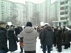 Около 50 человек приняли участие в согласованном митинге против строительства магазина между корпусами 1519-1522. Чиновники и депутаты не явились, а люди бьют тревогу — стройка уже мешает жителям и машинам спецслужб.