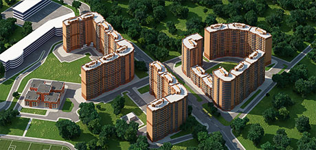 В ЖК «Гвардейский» кроме уже построенной 17-этажной башни построят еще 5 домов в 10 и 17 этажей, детсад, школу и наземные паркинги.