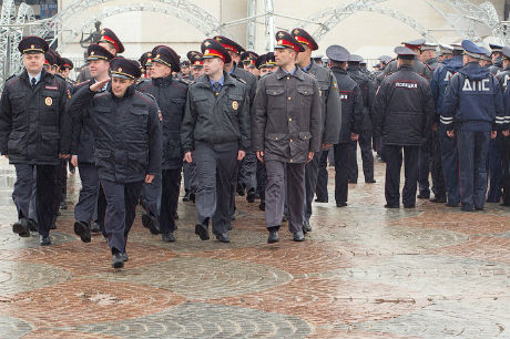 Чеканным шагом окружной гарнизон прошел торжественным маршем под «Прощание славянки», сообщает пресс-служба УВД.