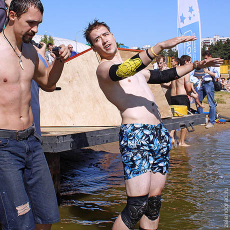 12 июля в пляжной зоне городского пруда прошло зрелищное мероприятие по прыжкам спортсменов и любителей роллер-спорта с трамплина приземлением в воду, организатором стал клуб «Роллертаун».