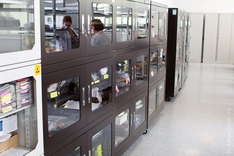 Рядом склад компонентов, специальные шкафы с поддержкой определенных условий хранения — внутри минимальная влажность и прокачивается азот.
