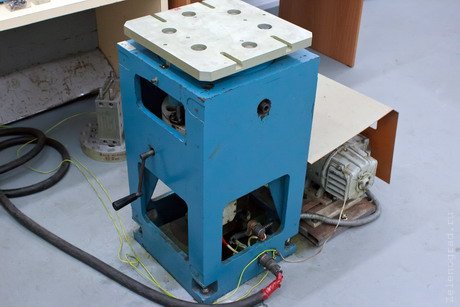 А это действующий раритет, старенький советский стенд для имитации транспортировки прибора на далекие расстояния — проверка необходима для уверенности, что прибор не развалится, пока доедет к заказчику по российским дорогам.