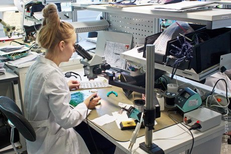 Лаборатория контроля поверхностного монтажа — его выполняют тоже преимущественно девушки, которые приходят на производство из зеленоградского Политехнического колледжа №50.