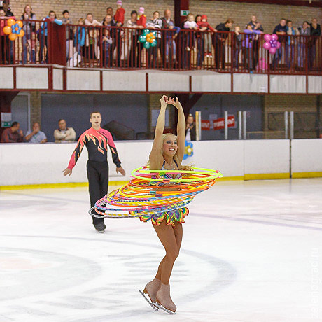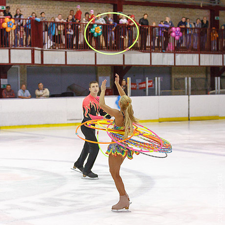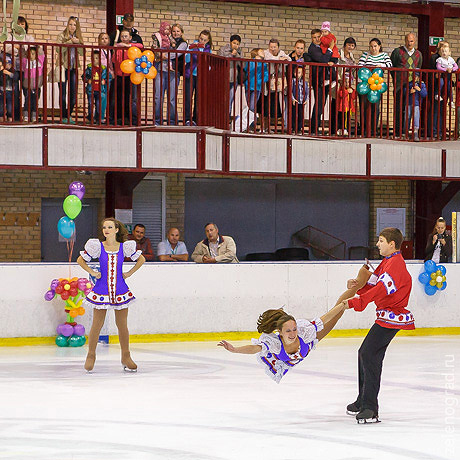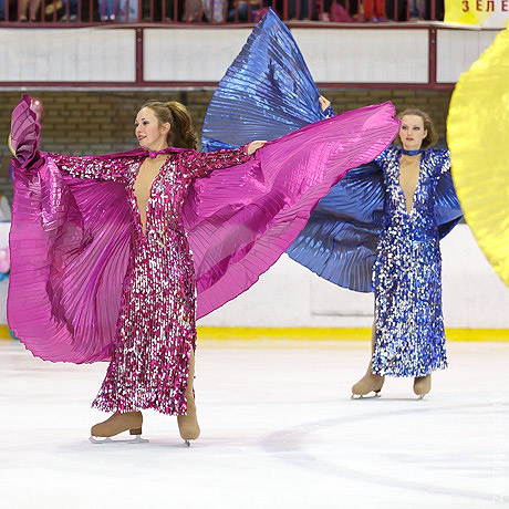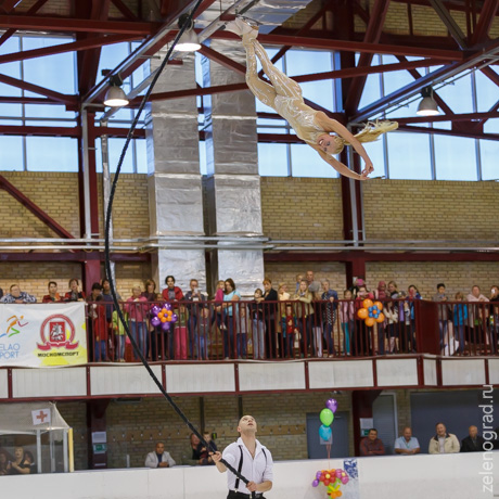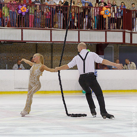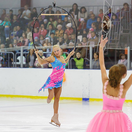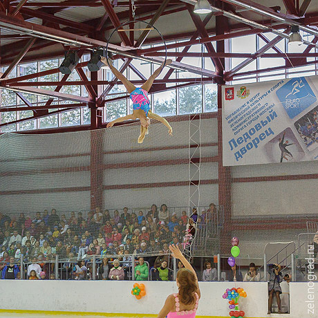 Начинали выступление юные фигуристы, которые здесь тренируются. Потом зрителей ожидали танцы и балет на льду, оригинальные цирковые и воздушные номера, выступление акробатов и клоунов.