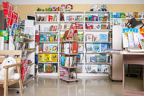 В специальном уголке для пап — papa-zone — стоят кресла, столик и стеллажи с литературой по бизнесу и саморазвитию. Кофе-машина готовит для гостей кофе и горячий шоколад, действует бесплатный Wi-Fi.